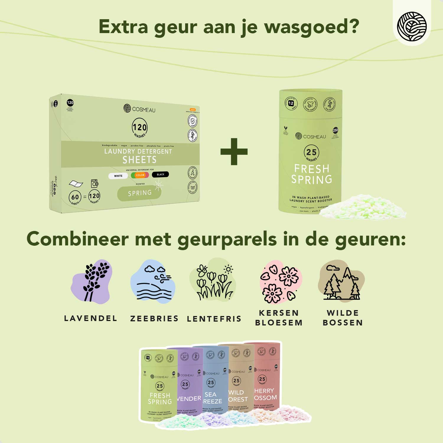 - Kies uit Lentefris, Zeebries, Lavendel, Kersenbloesem, Wilde Bossen, en Wolkendek