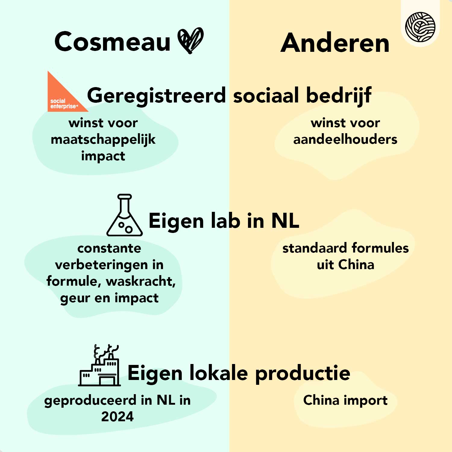 • Extra schoonmaak kracht d.m.v. enzymen. Niet geschikt voor wol en zijde, gebruik hiervoor Cosmeau wol & zijde